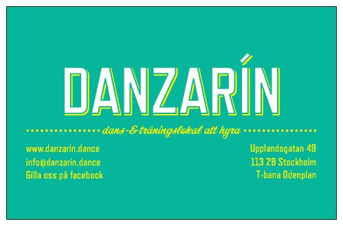 På Danzarín kan du hyra en träningssal (drygt 60 kvm) med specialbyggt trägolv för dans och träning. Musikanläggning med mixerbord och rejäla högtalare. Spegelväggar som kan döljas med drapperi. Två bekväma omklädningsrum med dusch. Trevlig sällskapsdel med reception/bar och pentry. Kringutrymmena uppgår till 50 kvm. Lokalen har ingång direkt från Upplandsgatan 49. Det finns hiss.